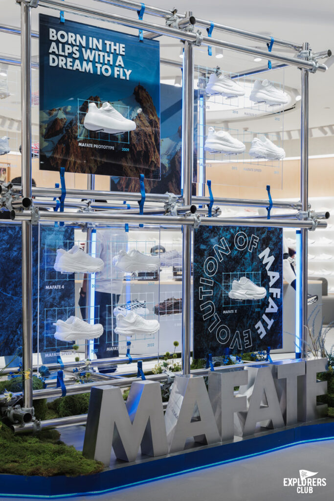 จากเทรลสู่สตรีท ภายในร้านมีการจัดแสดง คอลเลกชัน Mafate Family ซึ่งเป็นตัวอย่างที่ชัดเจนของแนวคิด Trail to Street ที่นำเทคโนโลยีสุดยอดของรองเท้าวิ่งเทรลมาปรับใช้กับดีไซน์ที่พร้อมลุยชีวิตในเมืองได้อย่างไม่เคอะเขิน