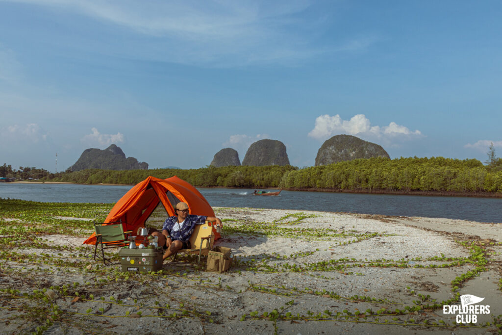“ตรงนี้ไม่เคยมีคนมากางเต็นท์นอนหรอก มีแต่ชาวบ้านแล่นเรือผ่านก็มีแวะบ้างถ้าจะนอนก็นอนได้”ได้ยินแบบนี้ยิ่งเป็นการการันตีว่ามันต้องเป็นจุดหมายใหม่ ๆ ที่ไม่มีใครมา เหมือนอย่างที่ผมต้องการ“อย่างนั้นก็ลุยเลยครับ” ผมรีบตอบออกไปพร้อมพยักหน้าหงึก ๆ ด้วยอาการตื่นเต้นแบบเก็บเอาไว้ไม่อยู่