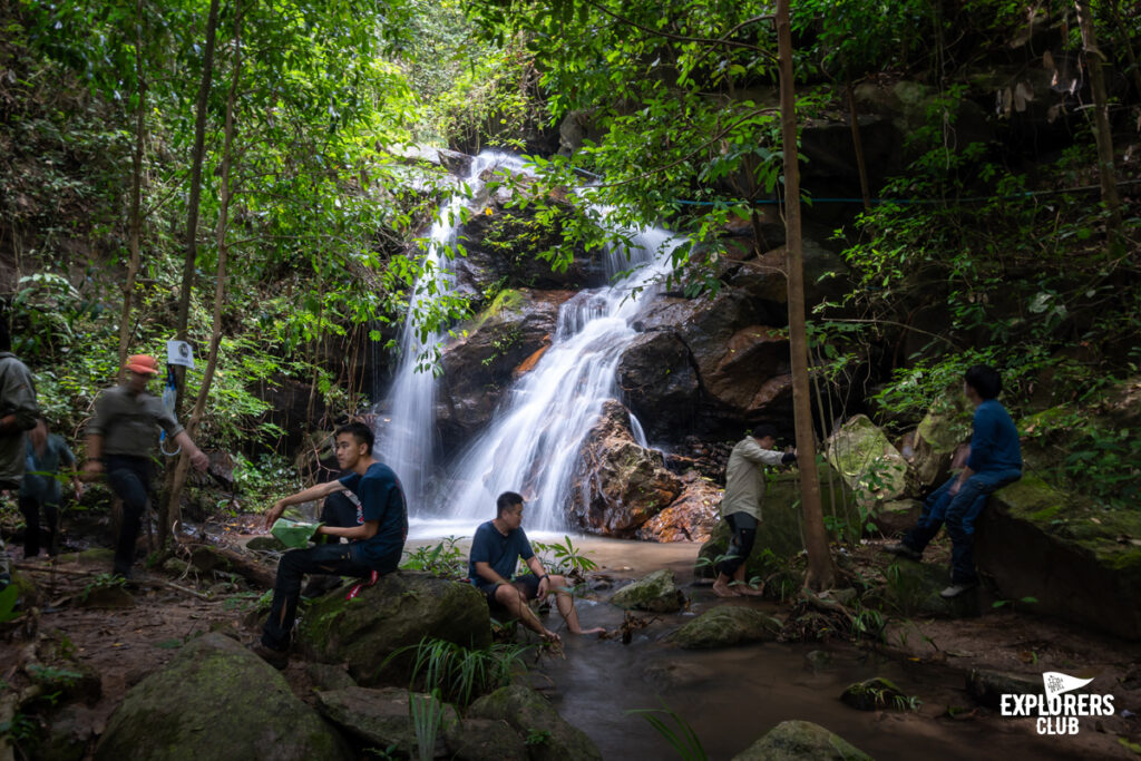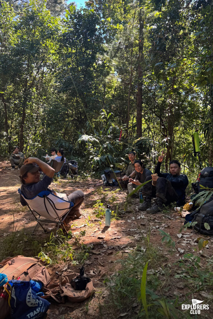 เราได้พักทานมื้อเที่ยงกันตอนบ่ายสามโมงที่น้ำตกลับไม่มีชื่อแห่งหนึ่ง การได้ปลดเป้ออกจากหลังเป็นอะไรที่สบายที่สุดแล้วในตอนนี้ มื้อเที่ยงของเราเป็นเมนูง่าย ๆ อย่างข้าวเหนียวหมูทอดน้ำพริกเผาห่อด้วยใบตอง นั่งจกข้าวเหนียวฟังเสียงน้ำตก ยิ่งทำให้มื้อเที่ยงอร่อยแบบสุด ๆ เรานั่งพักฟังเสียงน้ำตกได้ไม่นาน ก็ต้องย้ายเป้ที่อยู่บนพื้นกลับขึ้นมาอยู่บนหลังอีกครั้ง