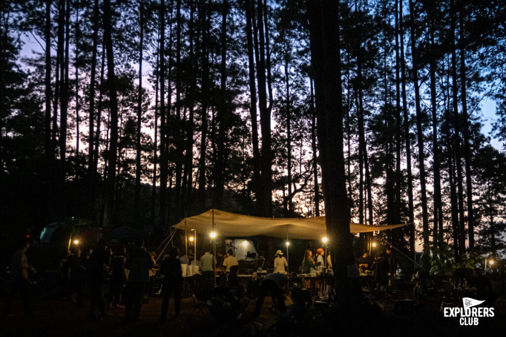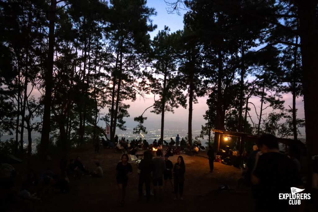 ถึงเวลาอาหารค่ำ เราต้องเดินจากจุดที่เรากางเต็นท์ไปอีกประมาณ 500  เมตร แสงจากไฟฉายคาดหัวเรียงต่อกันเป็นทางยาว เดินเรียงรายมุ่งไปในทิศทางเดียวกัน นั่นคือลานแคมป์ไฟ ความพิเศษของลานแคมป์ไฟในค่ำคืนนี้ คือเราจะได้เห็นวิวดาวบนดินของเมืองเชียงใหม่เมื่อพระอาทิตย์ลับของฟ้าไปแล้ว แสงไฟจากเมืองที่สว่างขึ้น กับบรรยากาศรอบข้างที่มีเพียงแสงจากตะเกียงน้ำมันอาหารค่ำมือนี้ช่างเป็นบรรยากาศที่น่าจะจำอีกวันหนึ่งในชีวิต ต่างคนต่างเลือกมุมทานข้าวกันตามอัธยาศัย ยิ่งค่ำลงอุณหภูมิที่ค่อย ๆ ลดลงมาเรื่อย ๆ  แต่บรรยากาศรอบกองไฟค่ำคืนนี้ช่างอบอุ่น ทางผู้จัดโดยมีพี่งบ พี่ปั้น พี่ต่าย ได้ถ่ายทอดเรื่องราวของที่มาที่ไปของกิจกรรมในครั้งนี้ให้พวกเราได้ฟัง ต่างคนต่างแลกเปลี่ยนพูดคุย บอกเล่าประสบการณ์ให้กันฟังอย่างออกรสเมื่อถึงเวลาอันสมควร แต่ละคนก็แยกย้ายกันไปพักผ่อน