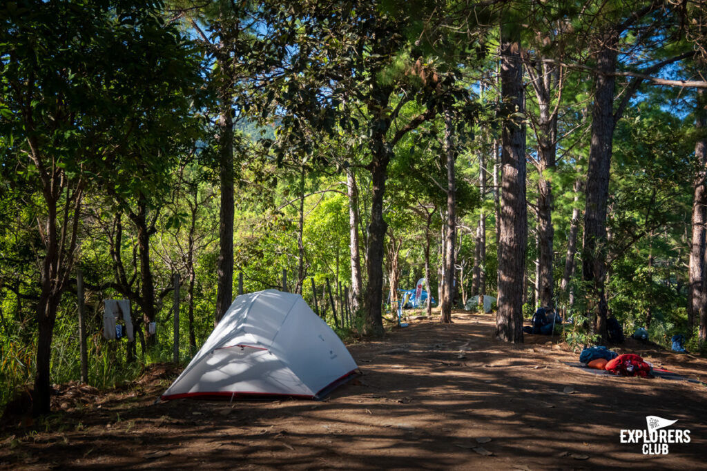 จากน้ำตกลับ เราเดินลัดเลาะลำธารกันมาสักพัก ก็จะมาเจอกับเนินสุดท้ายที่ตั้งตระหง่านต้อนรับเราด้วยต้นไม้ใหญ่ ก่อนที่เราจะต้องสังขาลไต่ขึ้นไปพักค้างแรมคืนนี้กันข้างบน เนินซึม ๆ สลับชัน ยาว ๆ 3 กิโลเมตร  ผ่านป่าไผ่ และป่าสน ทำเอากราฟหัวใจบนนาฬิกาวิ่งไปแตะโซน 5 พักเหนื่อยอยู่หลายที หลุดเนินนี้ ก็มีเนินหน้าต่อ สุดท้ายเราก็ขโยกตัวเองขึ้นมาถึงจนได้ แสตมป์พาสปอร์ต เดินสอดส่ายสายตามองหาเพื่อนที่ล่วงหน้ากันมาก่อน หามุมเหมาะ ๆ สำหรับกางเต๊นท์ นั่งพักรอทานมื้อค่ำ