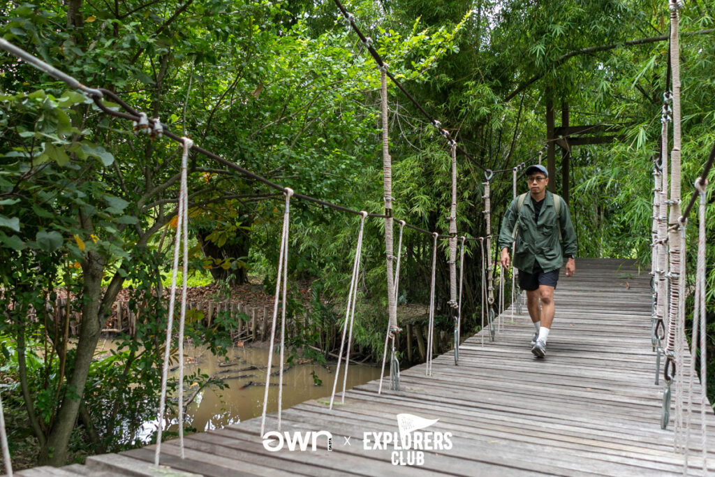 ผ่านดงจาก (มีประโยชน์ยกต้นซึ่งเราจะพาไปชิมเมนูจากต้นจากหลังจากนี้) เหล่าลำดวน ยางนา หว้า กันเกรา ตะเคียนทอง และลำพู (ที่ได้ชื่อว่าเป็นบ้านหิ่งห้อย ซึ่งเราจะได้ล่องเรือไปชมในค่ำวันนี้) ไปจนหอชมนก พนักงานซ่อมบำรุงประจำผืนป่าแห่งนี้ซึ่งมีทั้งนกประจำถิ่น และนกอพยพที่สามารถพบได้มากถึง 100 ชนิด รวมระยะทางยาวประมาณ 2 กิโลเมตร ทั้งหมดนี้ใช้เวลาราว 45 นาที ถึงหนึ่งชั่วโมงครึ่ง