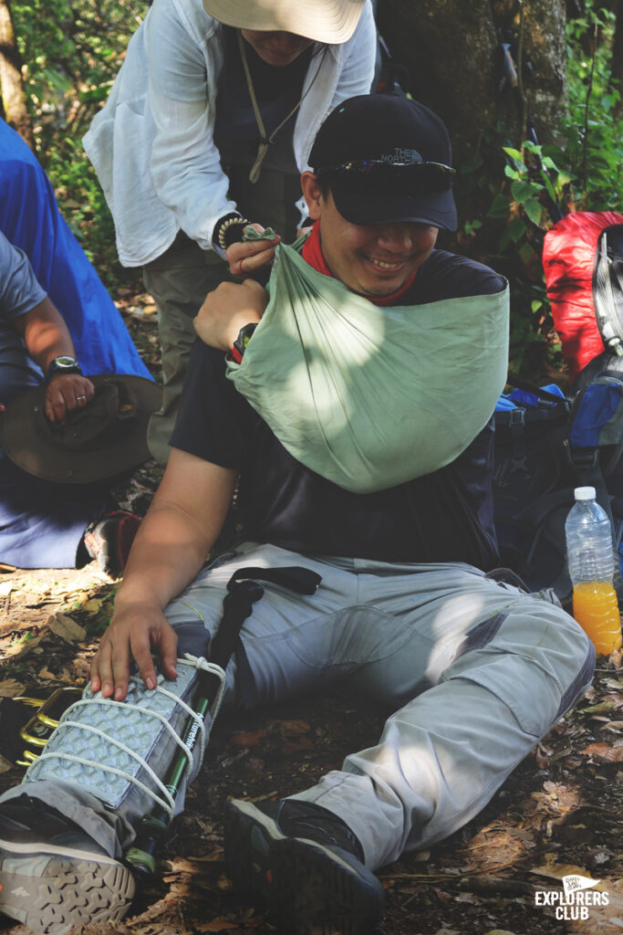 หลังจากที่เราใช้เวลากันพักใหญ่กับบทเรียนสนุก ๆ ก็มาถึงอีกหนึ่งบทเรียนสำคัญของงานนี้ ก็คือการรับมือเมื่อเกิดเหตุการณ์ฉุกเฉิน บทเรียนนี้เราจะพบว่าบรรดาอุปกรณ์เดินป่าที่พกมาสามารถดัดแปลงเป็นอุกรณ์ปฐมพยาบาลได้อย่างน่าสนใจ เราถูกแนะนำให้ได้รู้จักอุปกรณ์จำเป็นที่ควรติดตัว การปฐมพยาบาลเบื้องต้น รวมถึงยาประเภทต่าง ๆ ที่ควรจัดมาให้ครบเวลาเราเดินป่า
