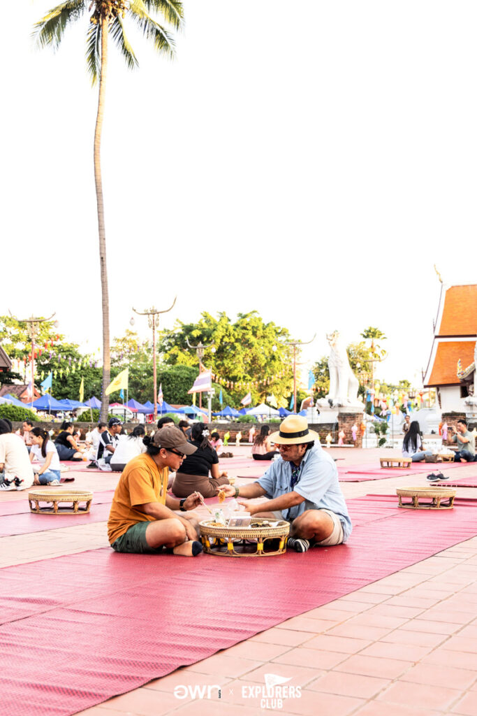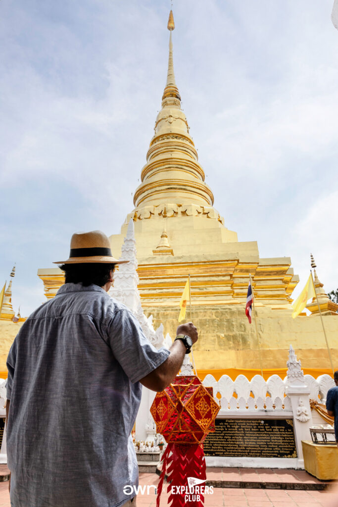 หลังจากทำโคมเสร็จพวกเราก็บึ่งรถไปต่อกันทันทีเพื่อนำโคมนี้ไปถวายที่วัดพระธาตุแช่แห้ง พระอารามหลวง ศาสนสถานที่เก่าแก่สวยงามอีกแห่งหนึ่งของจังหวัดน่าน ต้องบอกว่านี้คือประสบการณ์การท่องเที่ยวที่แปลกใหม่ และความน่าประทับใจก็คือบรรดาผู้คนที่เราพบเจออย่างแม่ถิรนันท์ หนานโชติ และอีกหลายคนที่ให้ความรู้สึกเป็นกันเองอย่างมาก ถ้าวันนี้เราทำกิจกรรมได้อย่างอิ่มใจแล้วก็ต้องไปจบวันสวย ๆ หาที่อิ่มท้องกันต่อที่ “กาดข่วงเมืองน่าน” ถนนคนเดินที่เปิดในทุกวัน ศุกร์, เสาร์ และอาทิตย์ ถ้าคุณมาตรงกับสามวันนี้พอดี แนะนำเลยว่าอย่าได้พลาดบรรยากาศดี มีดนตรีฟัง และมีของกินเพียบในราคามิตรภาพ